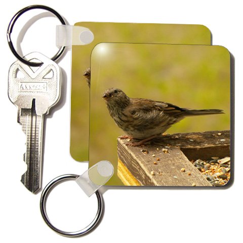 Young Junco at the Bird Feeder Key Chain is new, measuring 2.25w x 2.25h x 1/8d. Key Chain Tag has a glossy finish and comes with a hole for hardware. Our new key hanger makes an attractive decoration for any household, plus keeps keys organized and easy to find. Picture is printed on both sides of the key chain. Each includes snap-on key chain hardware.